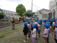 4月28日(金)に消防写生会を行いました。当日は本物のポンプ車と、葛西消防署のみなさんに来校いただきました。