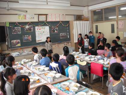 10月29日(水)にふれあい給食が行われました。蓮田愛育会の方々をお招きして、自分たちが収穫した蓮を使った給食を一緒に食べました。会の中では今まで支えてくれたことに対しての感謝の言葉や蓮の歴史についての質問タイムなど、子どもたちは充実した時間を過ごすことができました。