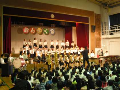 金管バンドクラブは毎朝、早くから練習を積み重ねてきました。5年生27名。6年生12名が心を一つに演奏しました。「シンクロボンバイエ」「RPG」ともにさすが高学年と思わせてくれる演奏を見せてくれました。