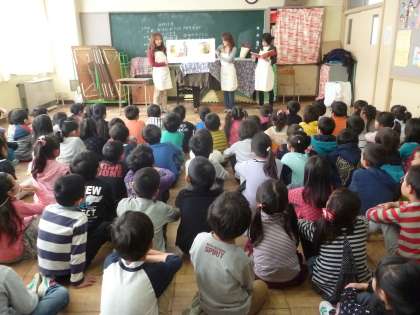 12月5日(金)、1年生合同「え・ほんの会」による絵本の読み聞かせがありました。1冊目は『How do you do?』というイギリスの本でした。保護者の方が英語と日本語の2ヶ国語で読んで下さいました。2冊目は『くまのコールテンくん』です。子供たちは素敵な物語に聞き入っていました。3冊目は『まどからおくりもの』です。色々な贈り物がそれぞれの家に届くというお話でした。1年生のみんなも、「え・ほんの会」から絵本の読み聞かせというプレゼントをもらい、幸せそうな様子でした。