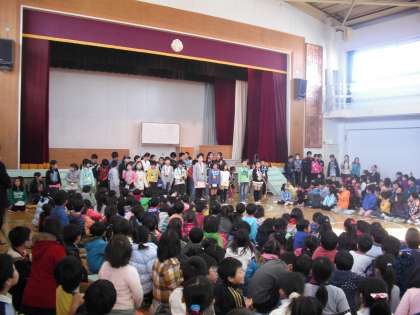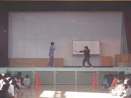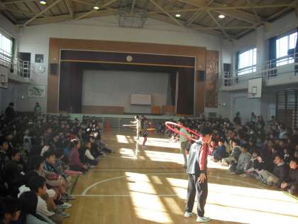 12月19日(金)の5校時に、遊び名人集会が行われました。体育館で、各クラスの代表児童がそれぞれ得意なことを発表しました。体操名人、ピアノ名人、なわとび名人、一輪車名人、お笑い名人、フラフープ名人、けん玉名人、野球名人、リフティング名人、昆虫名人など様々なジャンルで発表が行われ、体育館は大盛り上がりでした。