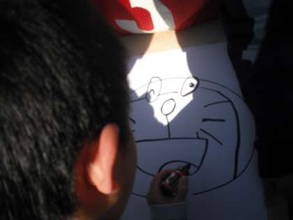 3月5日(木)に似顔絵集会が行われました。たてわり班に分かれ、決められたお題に対して班全員で協力して絵を描きました。一筆書きが集まった作品を見て、それぞれの班は盛り上がりました。