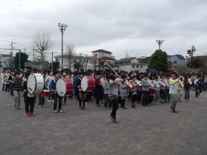 二小の伝統、朝会の鼓笛。6年生から引き継ぎを終えた5年生が演奏をしています。1週間の始まりが、気持ちのよいものになるよう、これからもがんばります。