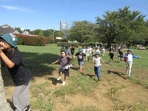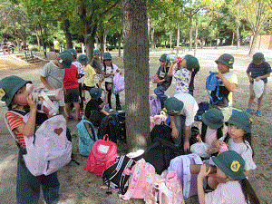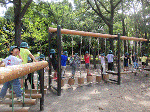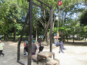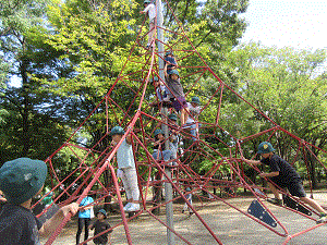 木場公園に到着すると、ふれあい広場、アスレチックに分かれての遊びが始まりました。