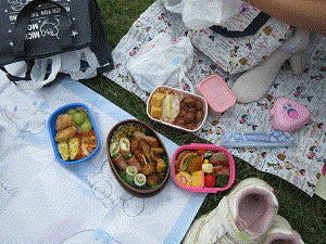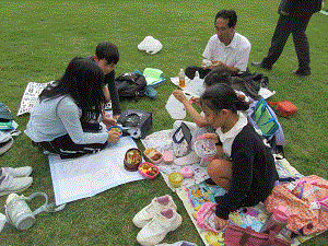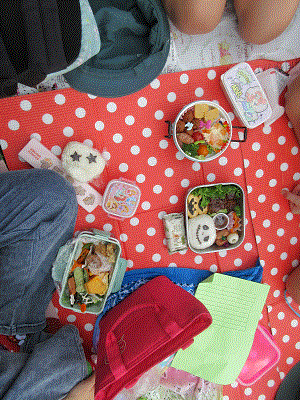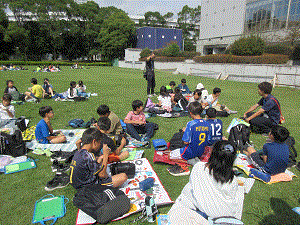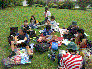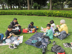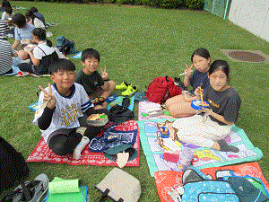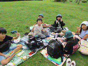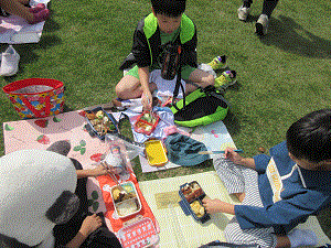 水の科学館の隣の広場で写真撮影をし、お弁当、おやつを食べました。