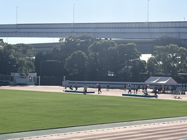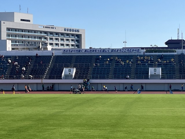 フィールド内では、走り幅跳び、走り高跳びが行われています。ハードル走、50m走、100m走、1000m走でも、好成績をおさめています。
