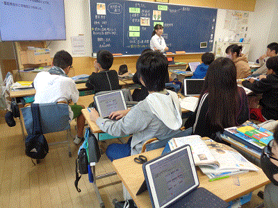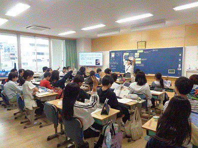 6年生の教室では、教育実習生の先生が授業をしていました。