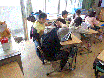 教育実習の先生と、道徳の授業をしています。