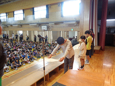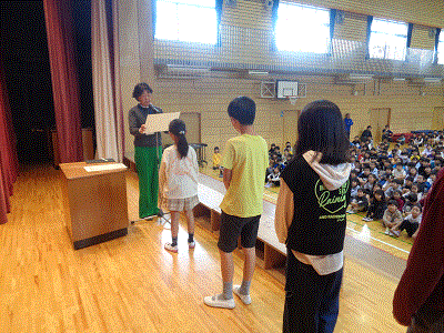 それぞれ舞台に上がり、校長先生から表彰状を受け取りました。
