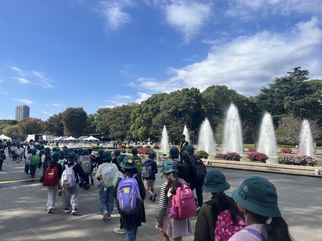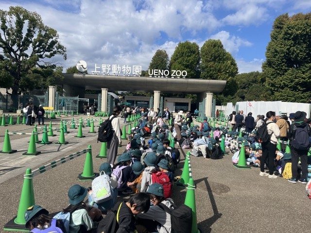 今日は、2年生の遠足で、上野動物園に来ました。出発にあたって、学年の先生、校長先生から、それぞれ3つの約束の話がありました。