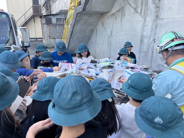 大きなロール状の紙ですが、1日に12本以上作られるそうです。”なぜ江戸川区に、会社を作ったのですか?”という子どもの質問が出ました。”水を沢山使うので、江戸川のそばにあるのですよ”という回答に、子どもたちは納得していました。