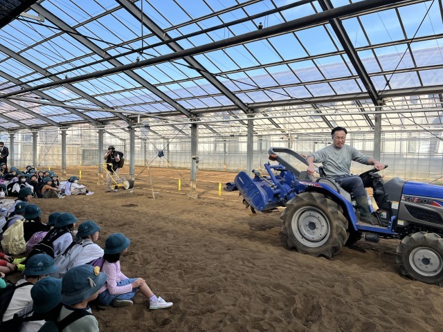 最後は、小松菜農家を訪ねました。小松菜の栽培方法を聞き、土の耕し方もトラクターを使って、見せてくださいました。