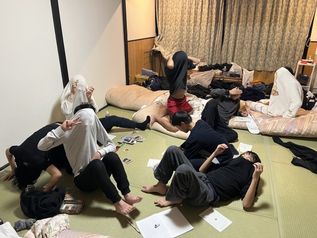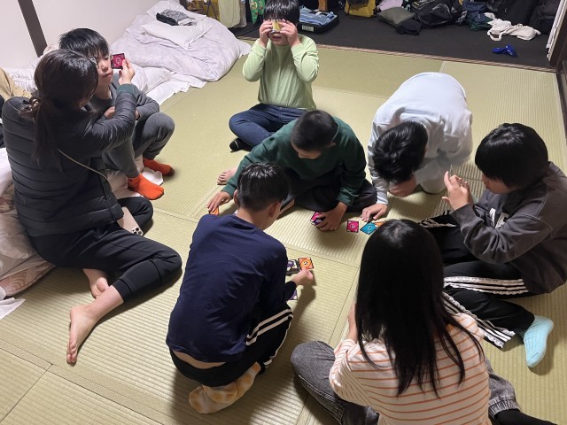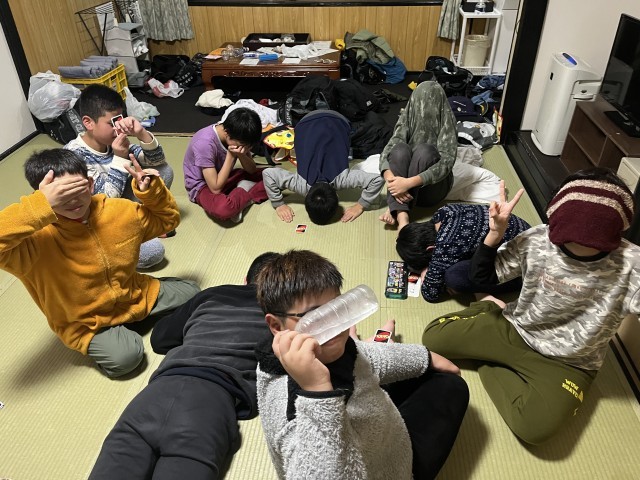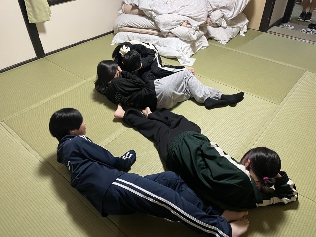 東観荘へ子どもたちの様子を見に行きました。こちらは、1,2組、おおぞらの子どもたちが泊まっています。昨日見に行った時より、さらに寛いでいる子どもたちの姿がありました。それぞれの宿舎に泊まっている子どもたちのカラーが、よく出ています。