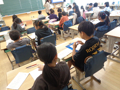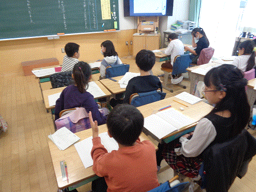 3年生の国語「ちいちゃんのかげおくり」の授業です。