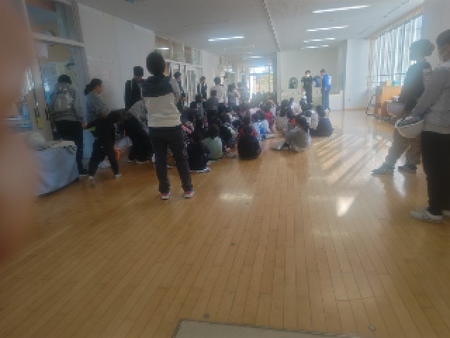 地震の後、津波警報が発令された場合を想定して、避難訓練を行いました。