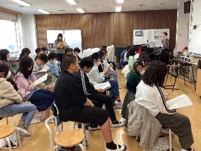 5年生の音楽では、二部合唱の曲を歌っていました。