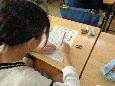 朝読書の時間、4年生以上は「よむYOMUワークシート」に取り組んでいます。