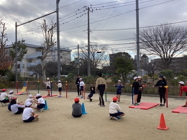 校庭を走って身体を温めてから、いざ鉄棒へ。安全に気を付けて、それぞれ楽しんで取り組むことができました。
