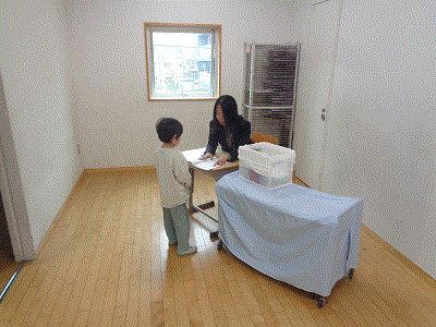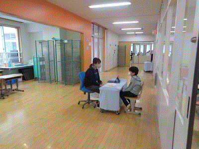 一人一人と2学期に頑張ったことを振り返り、これからもっと頑張ってほしいことなどを伝えながら、2学期の成果を手渡していました。