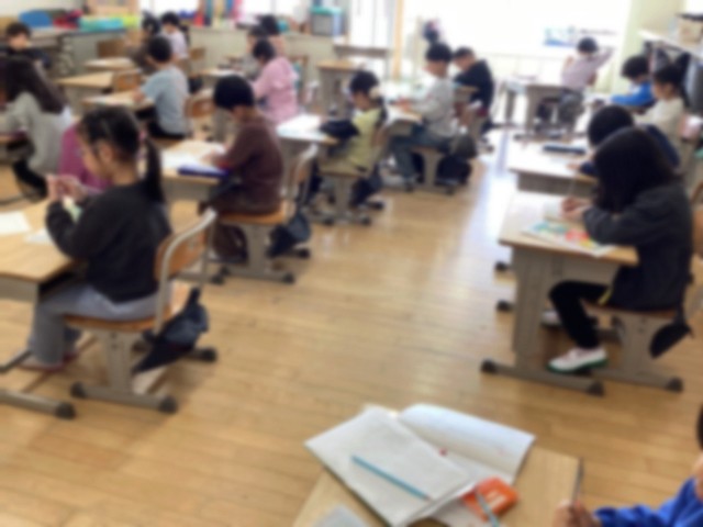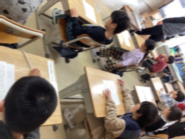 1年生の教室と、おおぞら学級の1・2年生の教室では、硬筆の書き初めをしていました。