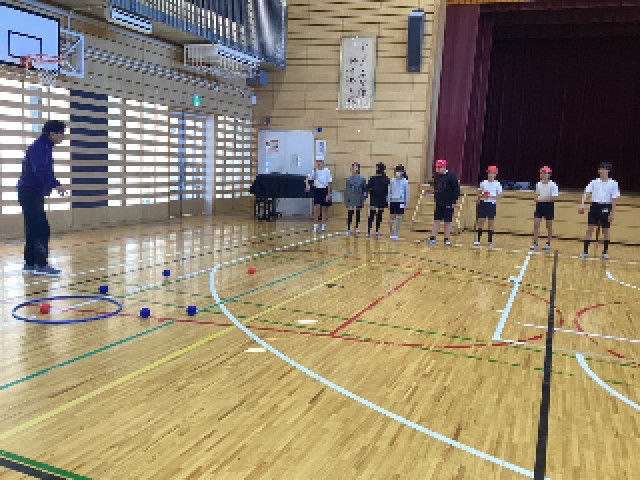 6年生は、ゲストティーチャーの方をお呼びして、ボッチャの体験をしました。