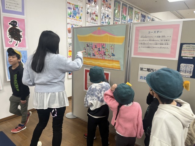 自分の学校以外の作品を見るという体験も、とても刺激的だったようです。お気に入りの作品を一生懸命見つけようとする姿がありました。