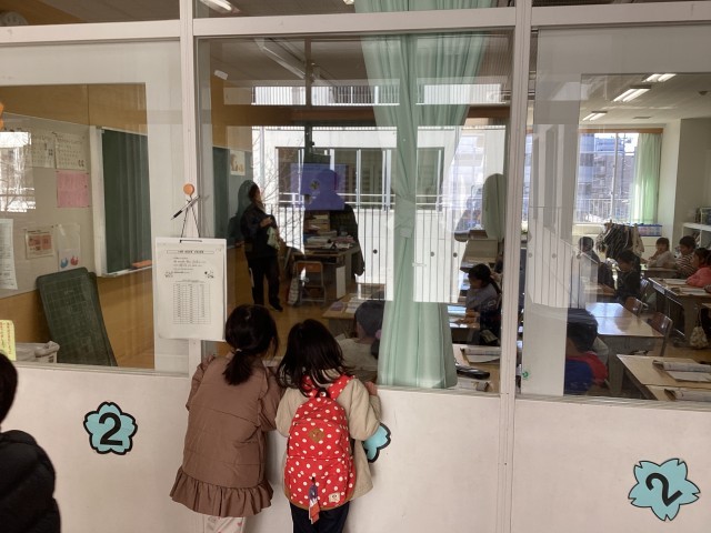 「1年生は、どんなお勉強をしているのかな。」「とても静かに先生の話を聞いているね。」