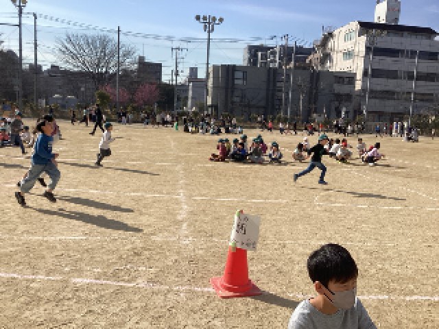 中休みと昼休みに学年で分かれ、校庭の内側と外側を使って、ぶつからないよう、前半に走るか後半に走るかを決めて走っています。