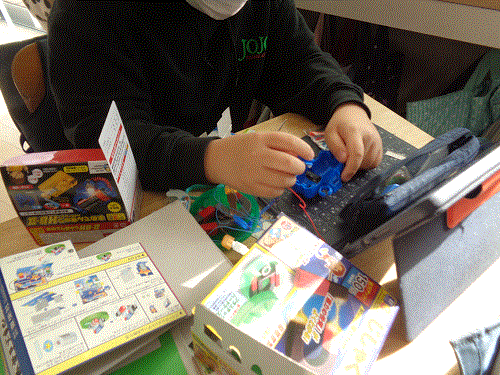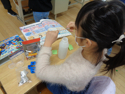 今まで使った実験キットや自分で用意した材料を使って、子どもたち一人一人が自分だけのおもちゃ作りを楽しんでいました。