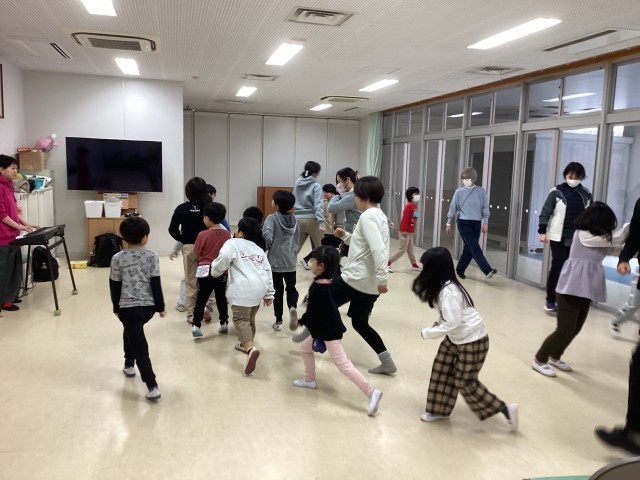 音楽に合わせて、小走りしたり、逆向きに歩いたり・・・と、リトミック音楽の時間が始まりました。