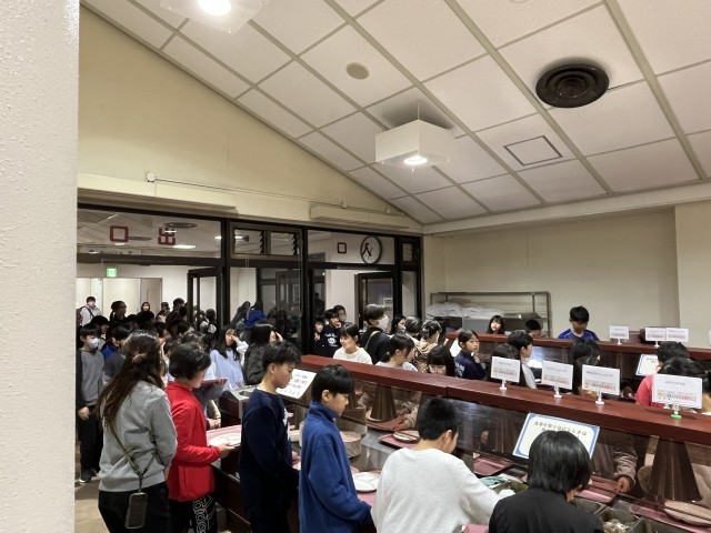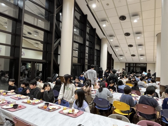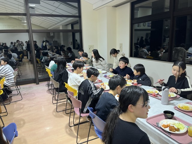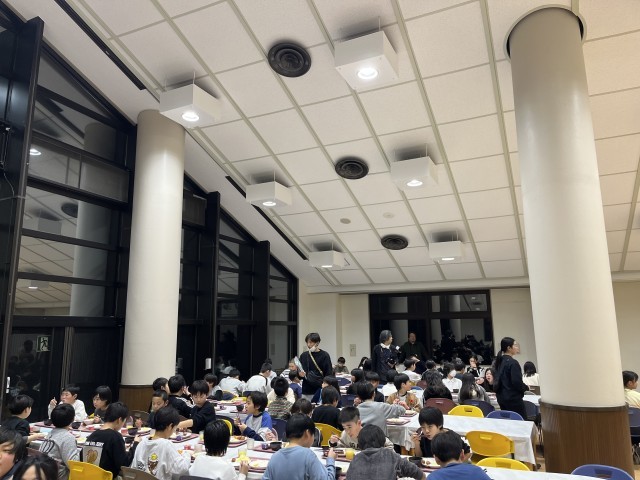 夕飯は、バイキングです。身体を思いっきり動かしたせいか、みんな口々にお腹空いた〜と言っています。お代わりを何度もしている子の姿もありました。美味しくいただきました。