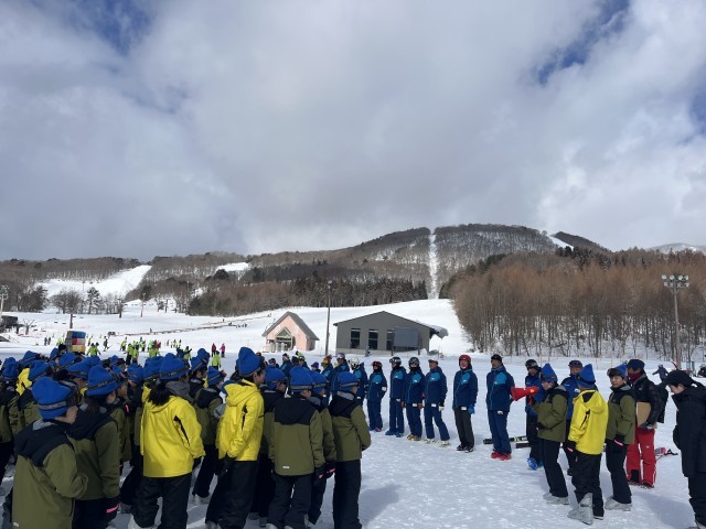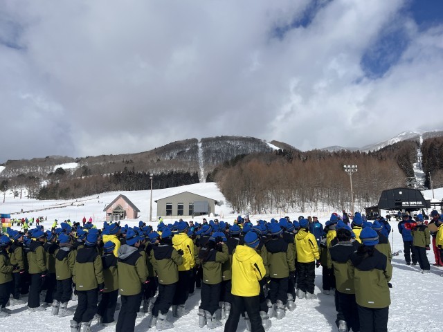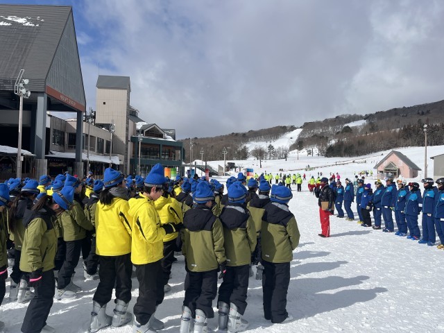 いよいよスキーの開校式です。天気も雪質もよいです。