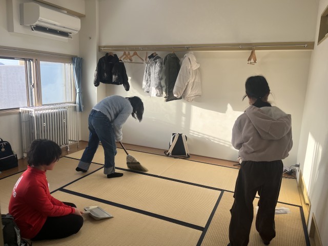 いち早く部屋を片付けた班は、カルタまでやっています。