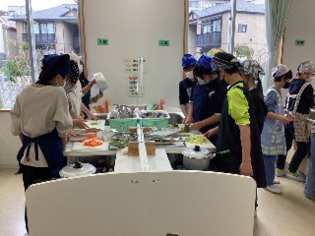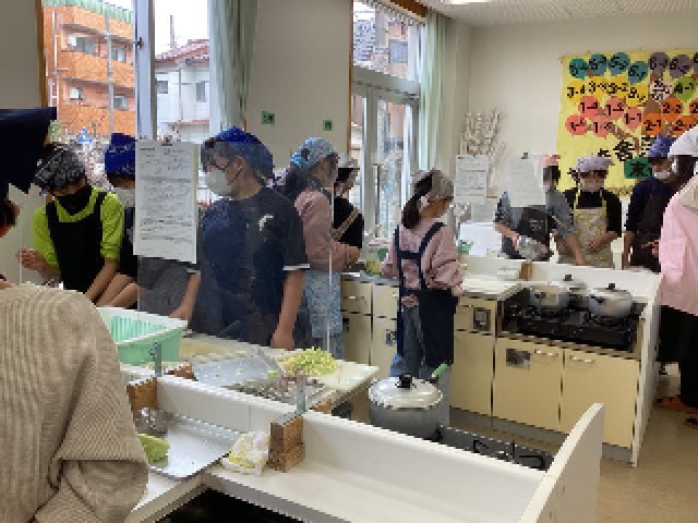 6年生は、マナー給食の準備で「温野菜サラダ」を作っています。