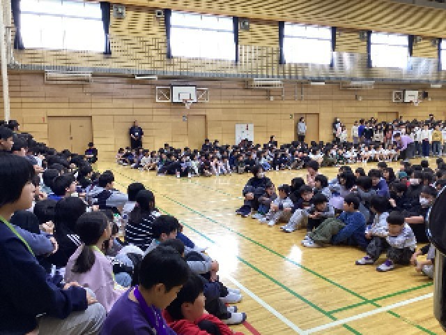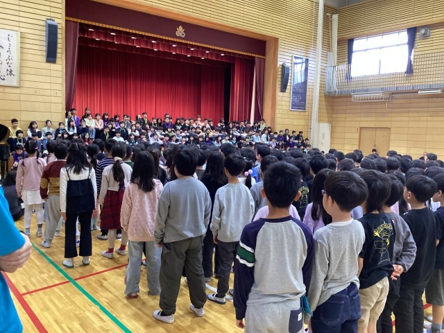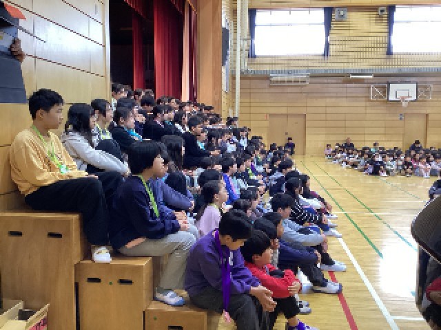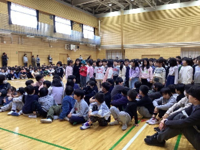 次に、3年生、2年生、4年生、1年生から感謝の言葉と、1年生から替え歌での感謝の歌のプレゼントです。
