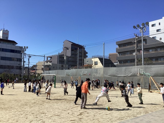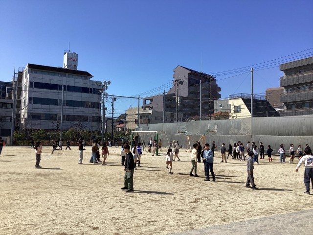中休みに、子どもたちが仲良く、楽しそうに遊んでいます。