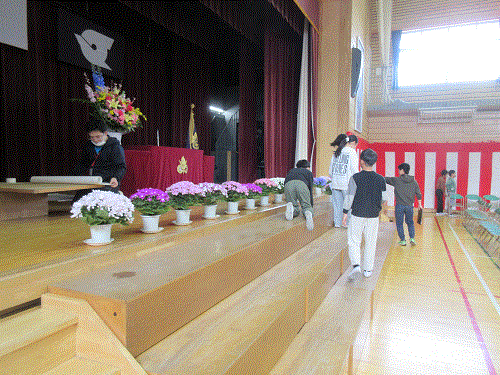 前日の今日、5年生と教職員が協力して、卒業式の準備を行いました。