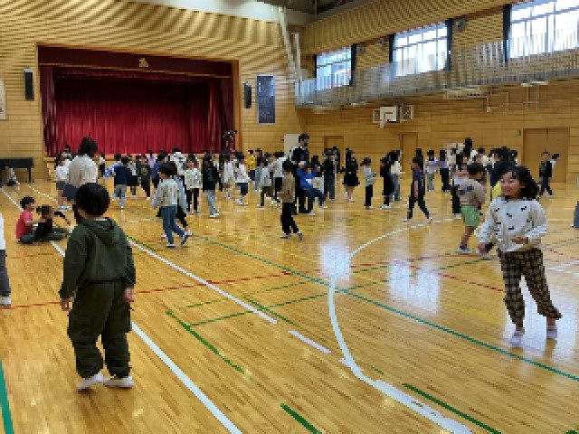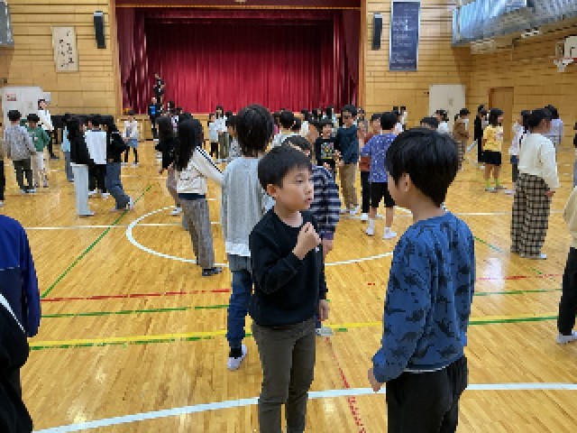 3年生が、体育館で学年レクをしていました。