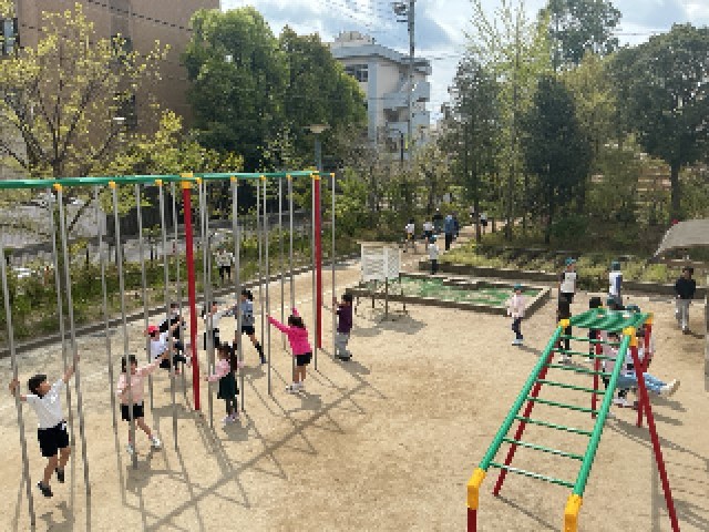先生と追いかけっこをする子、ボールで遊ぶ子、固定遊具を使って遊ぶ子など、それぞれ思い思いの遊びを楽しんでいました。