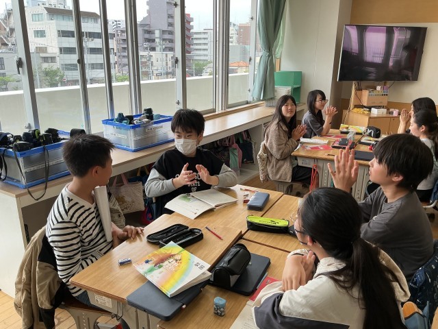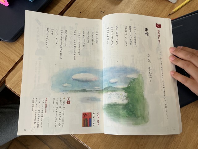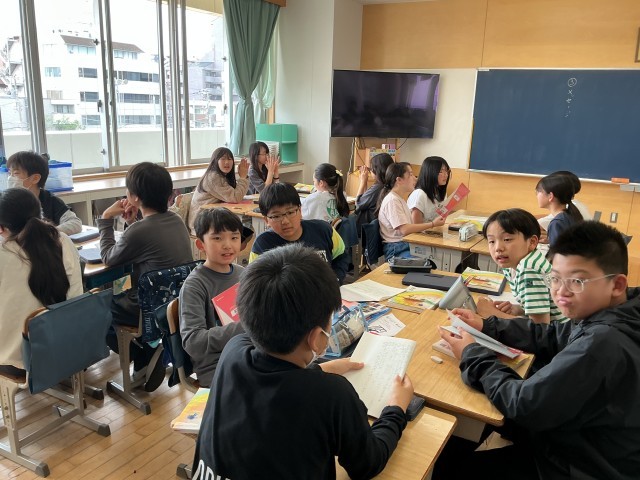 詩を楽しむ学習では、「この詩は、だれに向かって書いてあるのか」「何を呼びかけているのか」をそれぞれグループで考えて、話し合っています。活発に話し合いをしている姿があります。