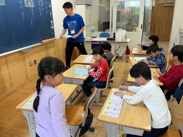 それぞれ漢字の学習を始めています。とめ、はね、はらいに気を付けて、丁寧になぞる姿がありました。
