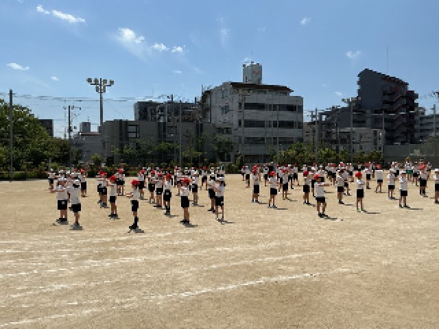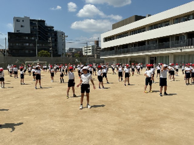 今日は日差しが強く、気温も高いです。まだ、身体が暑さに慣れていない時期ですので、しっかりと水分補給を行いながら、元気な4年生らしい表現を見せてほしいと思います。