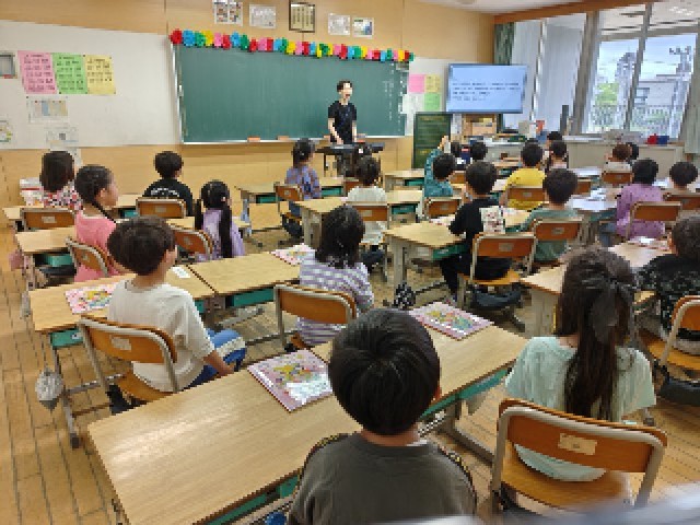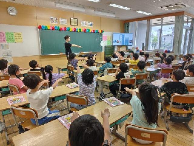 1年生が、教室で音楽の学習をしていました。