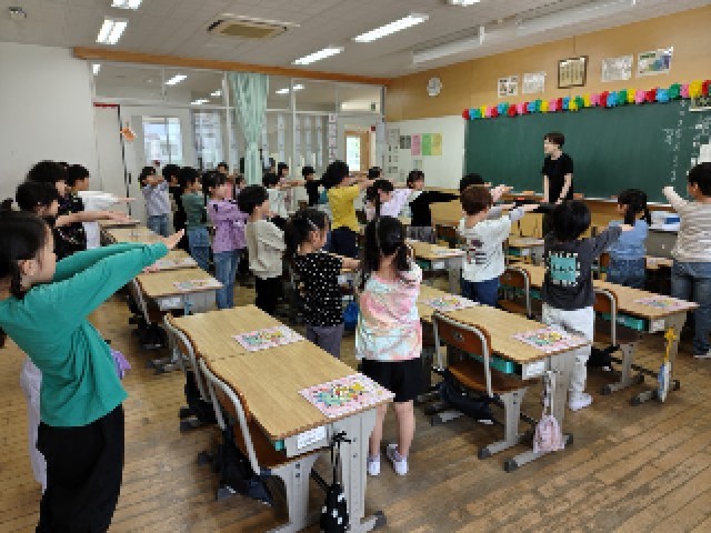 校歌を歌ったり、音の高さを身体で覚えたりして、とても楽しそうに学んでいます。