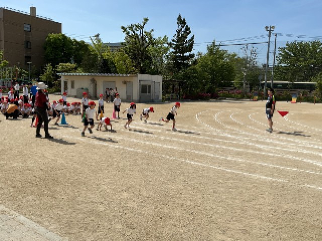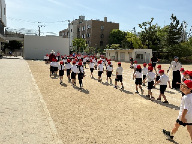 1年生が、校庭で体育をしていました。