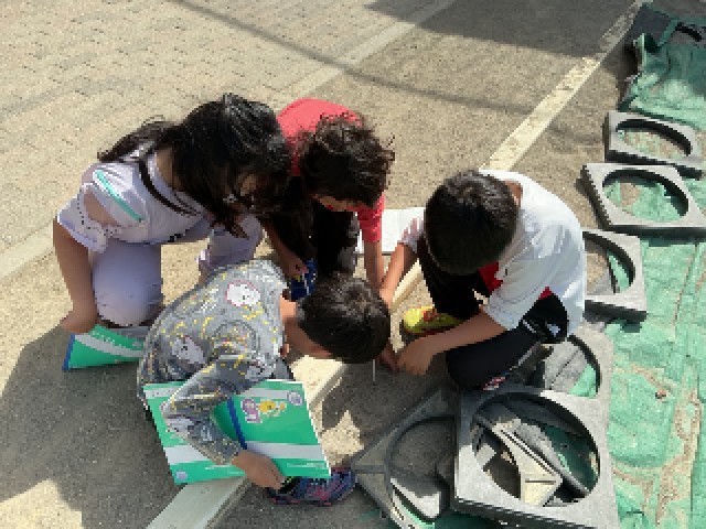 グループで役割分担を決め、真剣に測っています。科学的な見方・考え方を育むため、体験を通して思考を深めています。