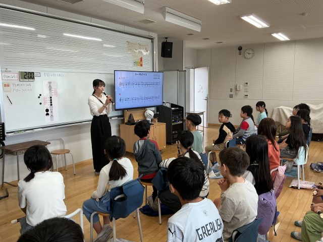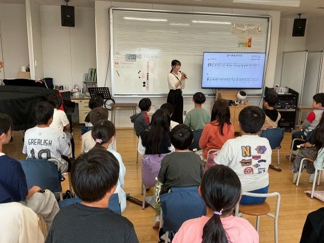 先生が見本の演奏をすると、子どもたちはうっとり聞き惚れていました。