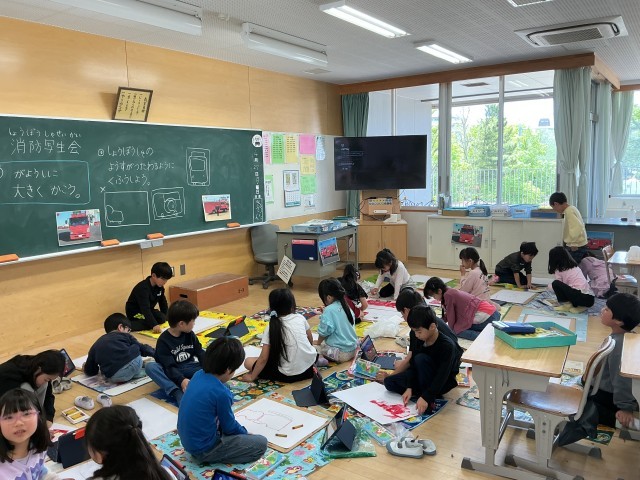 2年 消防車写生会