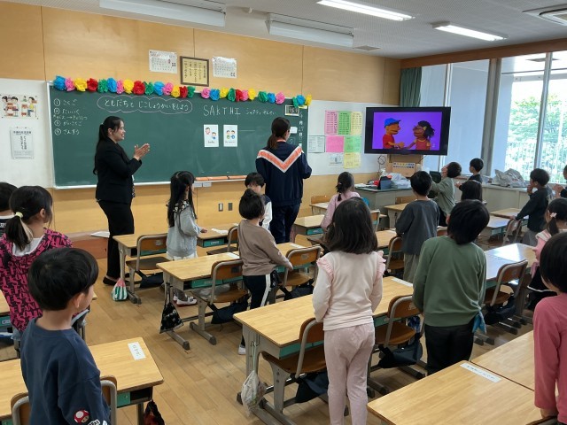 江戸川区が目指している「躊躇なく英語を話す子ども」を育成すべく、1年生からの外国語活動に力を入れていきます。