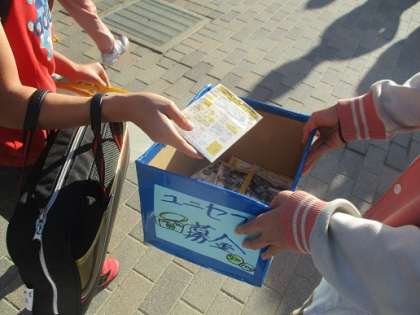 今日からユニセフ募金が始まりました。朝、校門に代表委員会の子どもたちが立ち、募金活動を行いました。早速協力してくれる子どもたちがたくさんいました。明日、明後日と続きます。ご協力に感謝いたします。